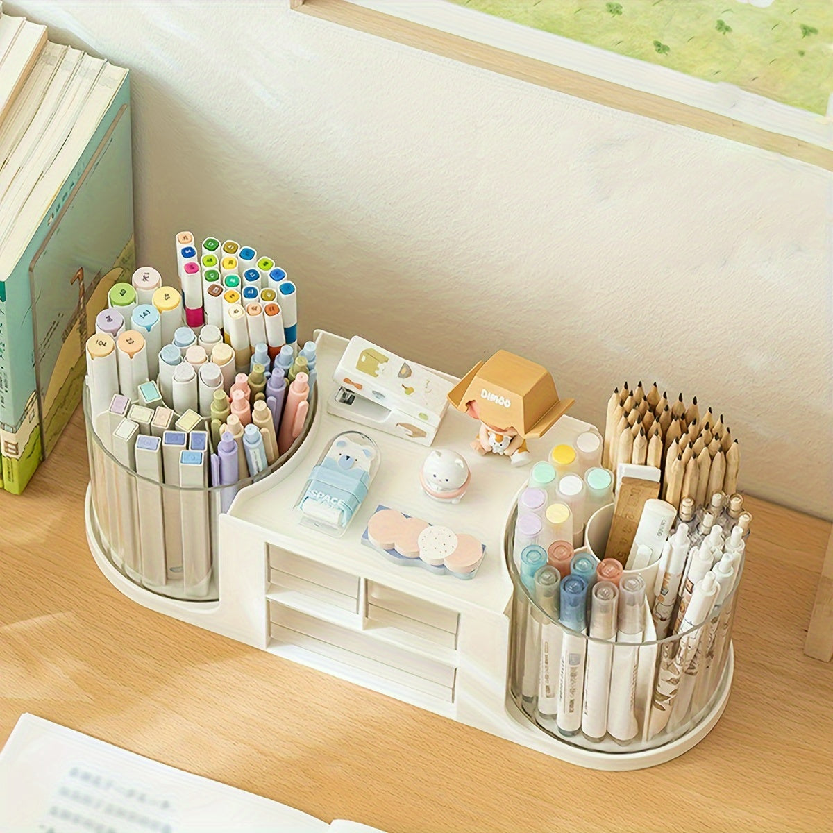 • Rotation à 360° : Accédez facilement à vos stylos, marqueurs, et autres fournitures grâce à une rotation fluide et pratique.